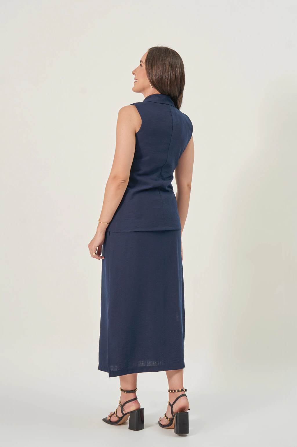 O Colete Pamela é a peça-chave para elevar seu estilo com sofisticação. Com uma modelagem transpassada e botões forrados que destacam o acabamento impecável, ele exala modernidade. Disponível nas cores azul marinho, bege e off-white, traz gola com lapela para um toque clássico e forro em viscose que garante conforto. Ideal para compor looks elegantes e versáteis, é perfeito para quem busca um visual alinhado e cheio de personalidade.
