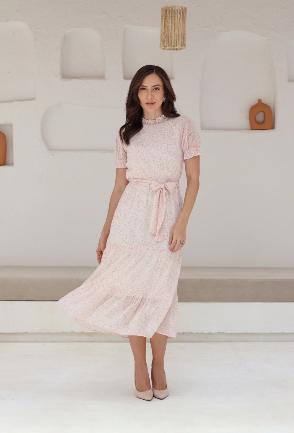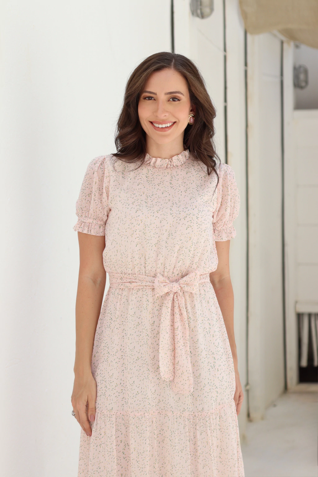 O Vestido Thalia é leve, feminino e cheio de charme. Em chiffon fluido com estampa floral, traz cintura marcada com conforto, mangas delicadas e saia em camadas que valorizam o movimento. O fechamento na gola adiciona um toque elegante, tornando a peça versátil para compor looks românticos e sofisticados em diferentes momentos.
